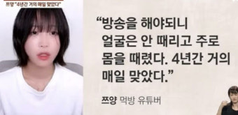 | 2024년 7월 | 한 유튜브 채널을 통해 쯔양의 과거사 폭로. 전 남자친구의 폭행, 불법 촬영물 협박, 최소 40억 원 수익 갈취 사실 고백. '사이버 렉카'들의 금전 요구 및 협박 실체도 드러남 | 유튜브 채널 폭로, 쯔양 본인 고백 |